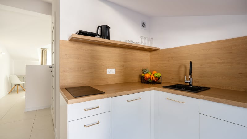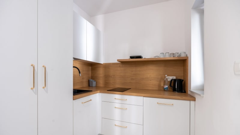 • I lägenheterna finns kyl/frys, diskmaskin, mikrovågsugn, induktionshäll, brödrost, kaffebryggare, vattenkokare och strykjärn.